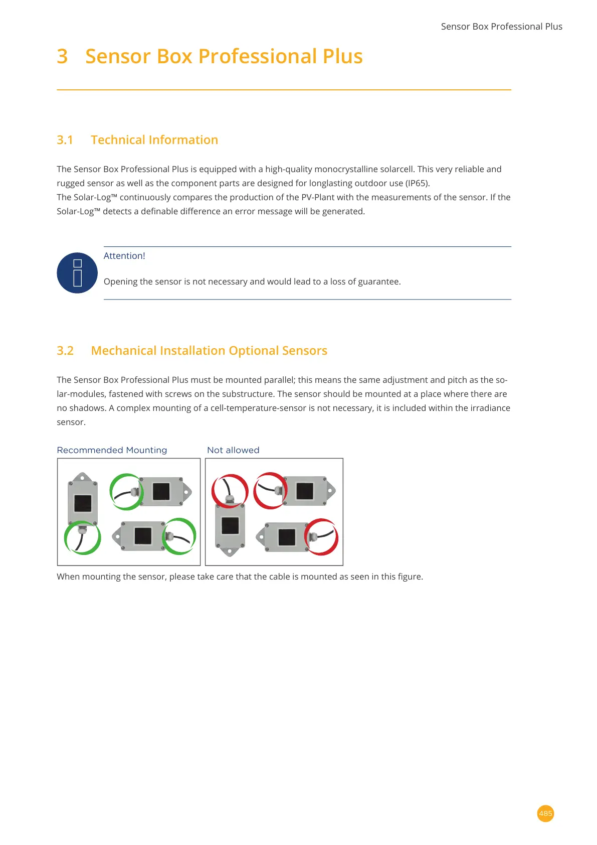 lar-modules, fastened with screws on the substructure. The sensor should be mounted at a place where there are