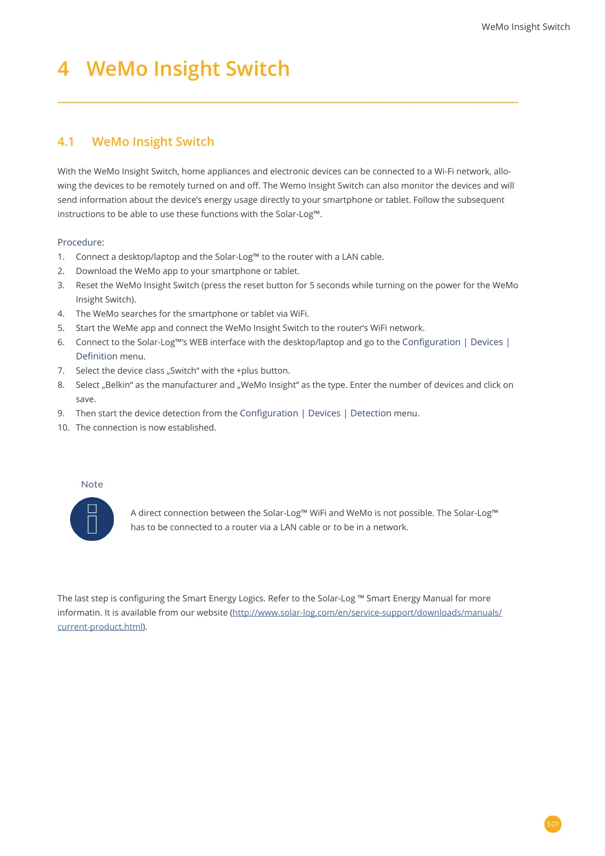 A direct connection between the Solar-Log™ WiFi and WeMo is not possible. The Solar-Log™