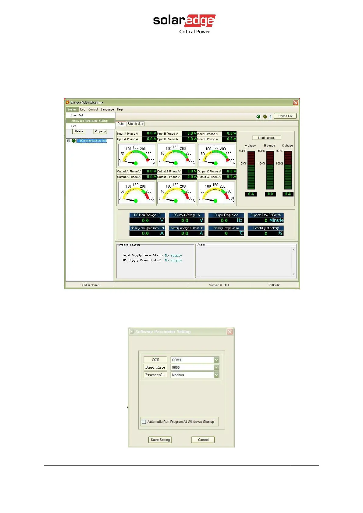 to the UPS, baud rate choose 9600, protocol choose “modbus”, then save this setting.