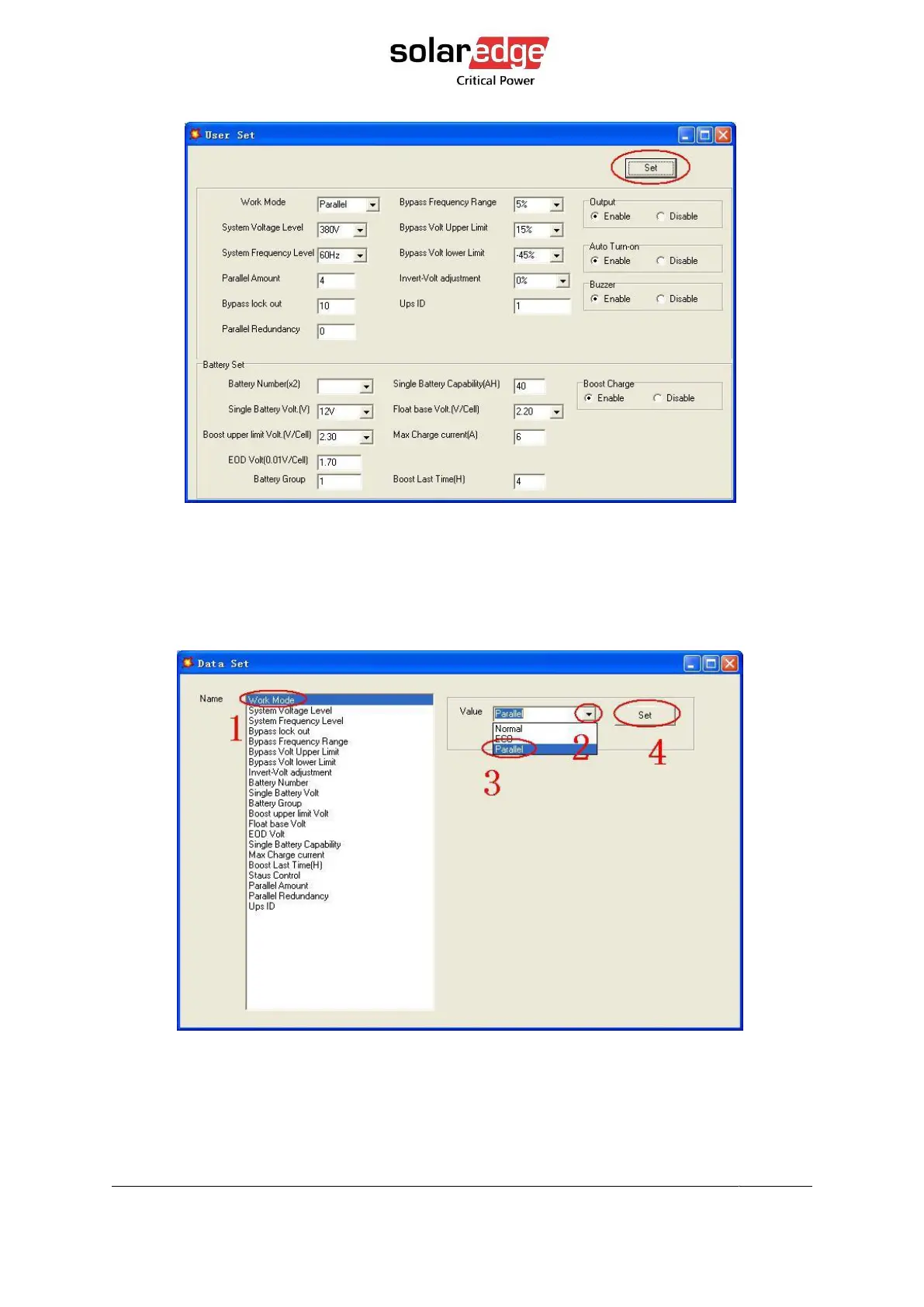 At the window of “Data Set”, click “Ups ID”, write a value for the parallel UPS ID at the
