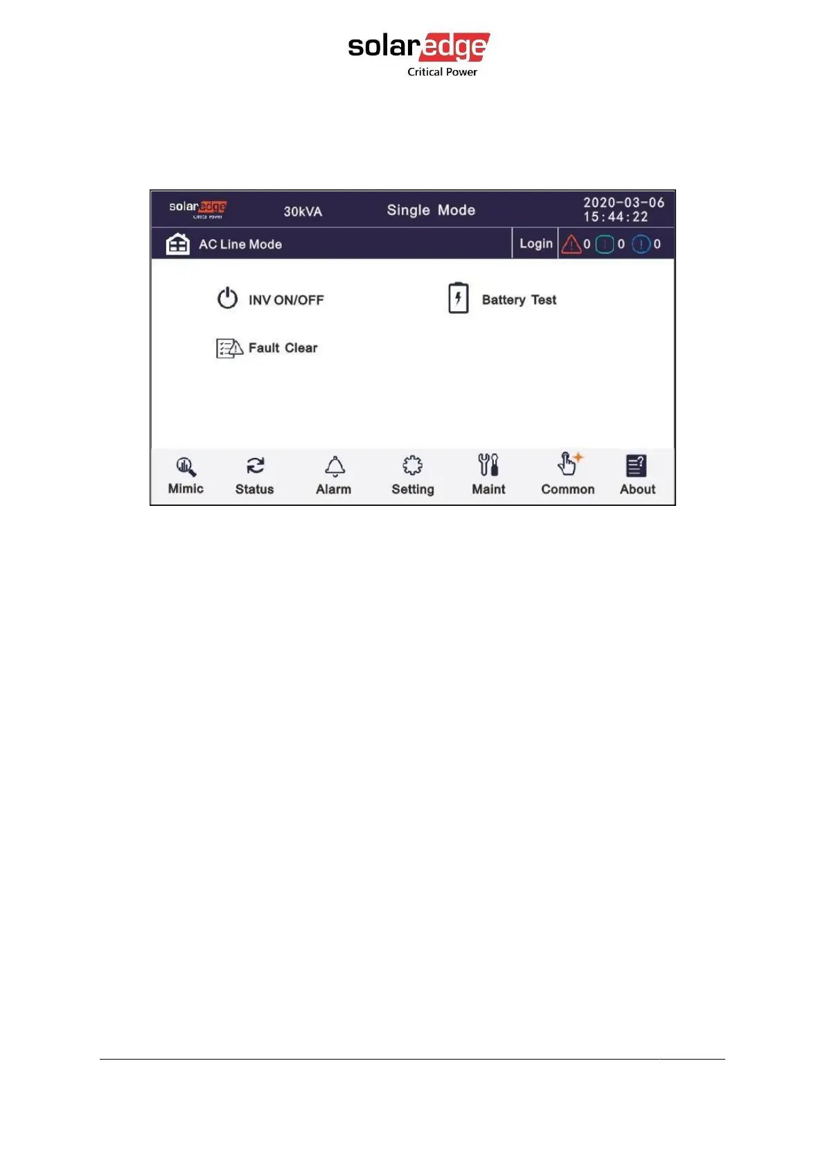 INV ON/OFF, Battery test and Fault clear.