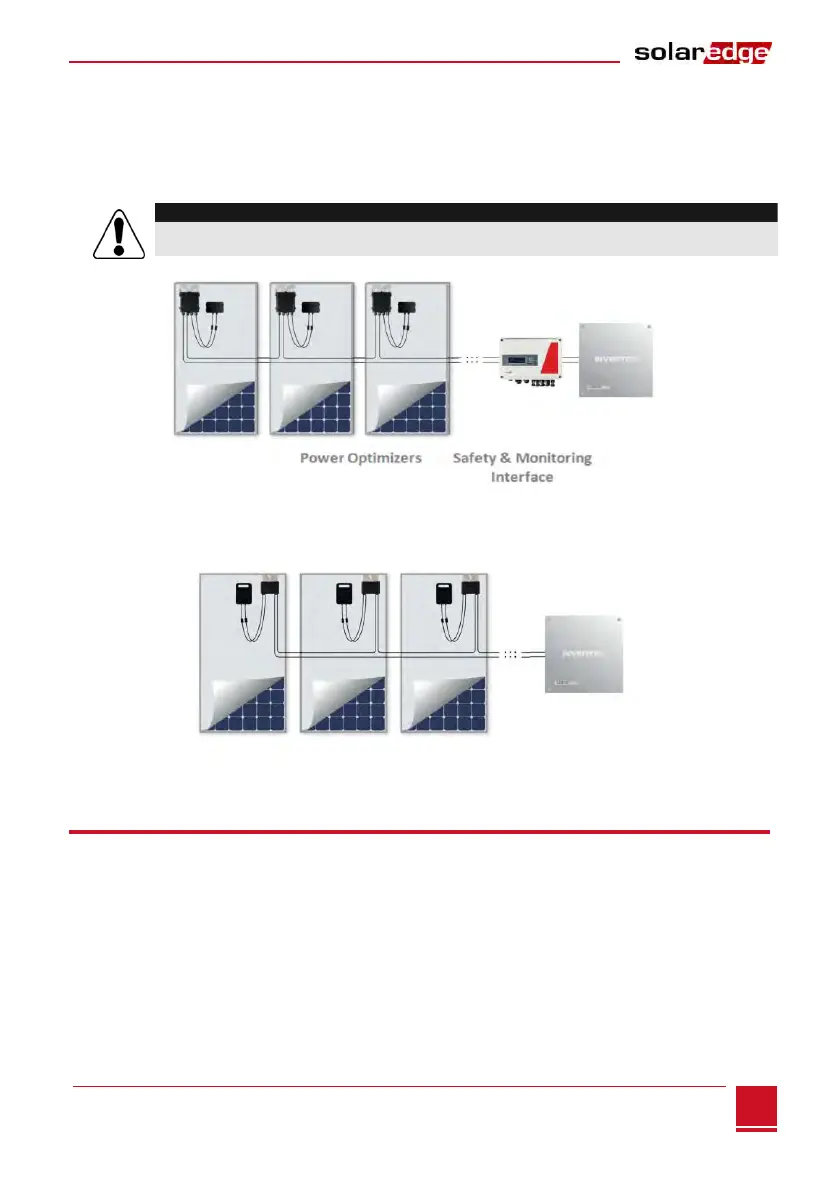 Figure 2: Power optimizers connected in series to a non-SolarEdge inverter via Safety &