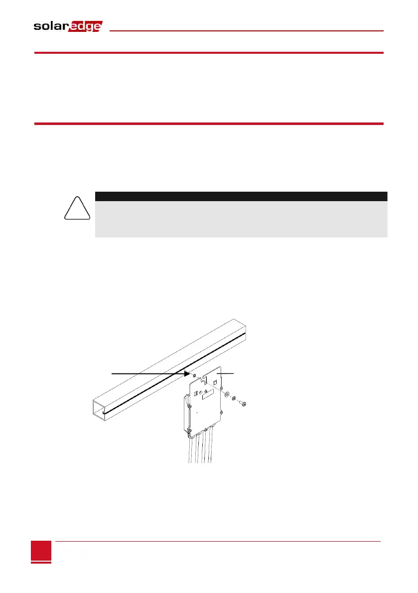 Do not drill through the power optimizer or through the mounting holes. The drilling vibrations