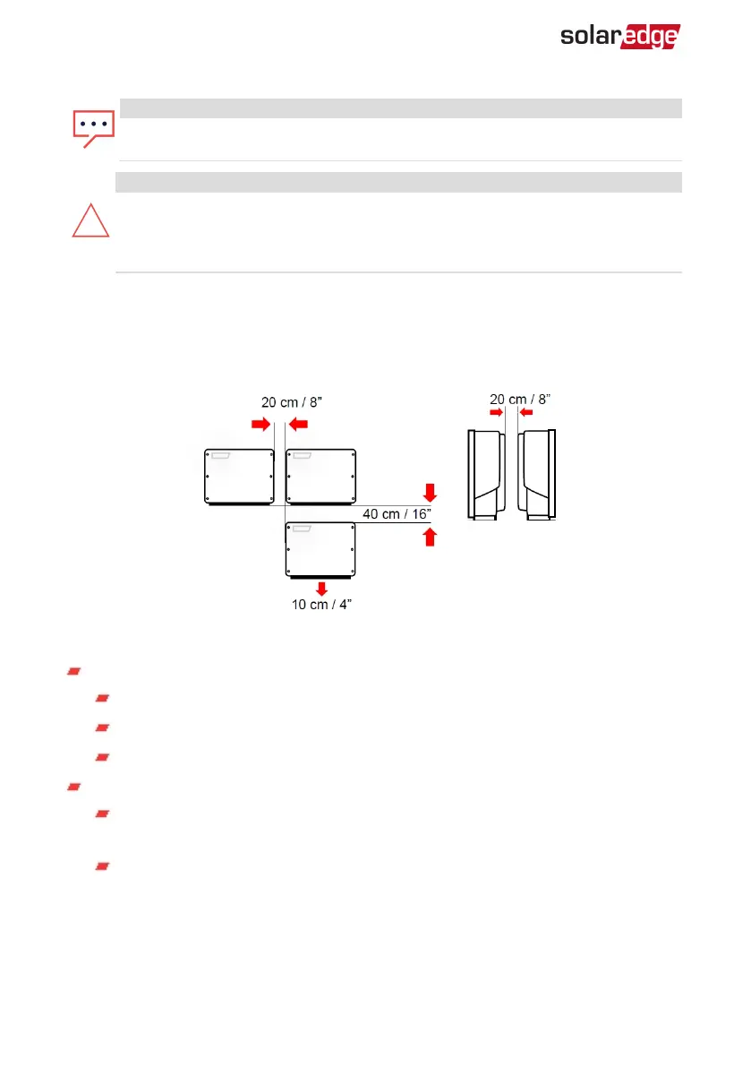 When installing inverters one above of the other, leave at least 40 cm (16")