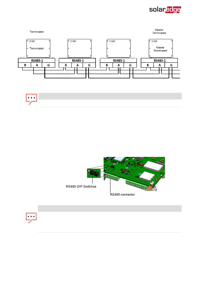 Only the first and last SolarEdge devices in the chain should be terminated.