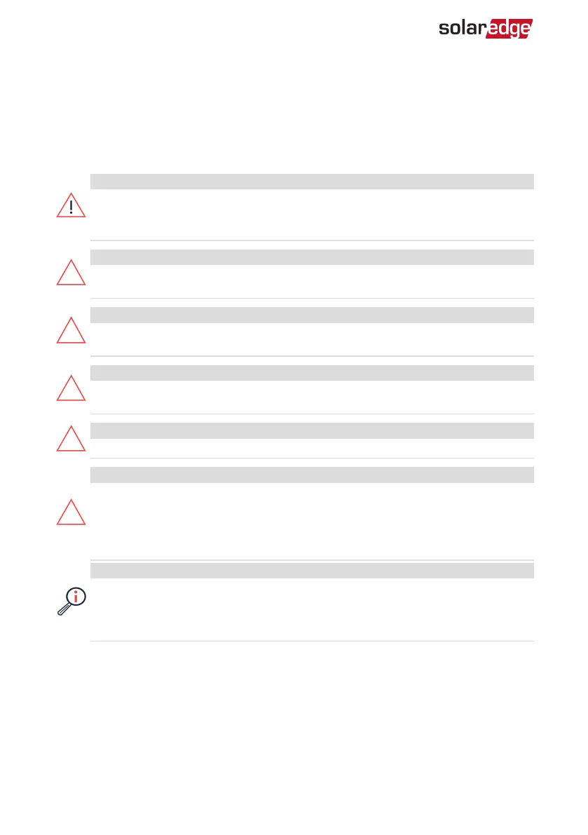 The following notes and warnings apply when installing the SolarEdge power