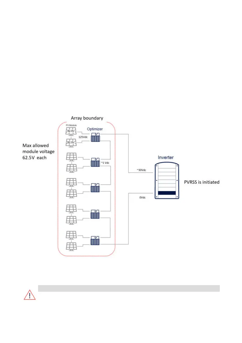 the optimizer (125V dc). The diagram below depicts a typical PV hazard control system