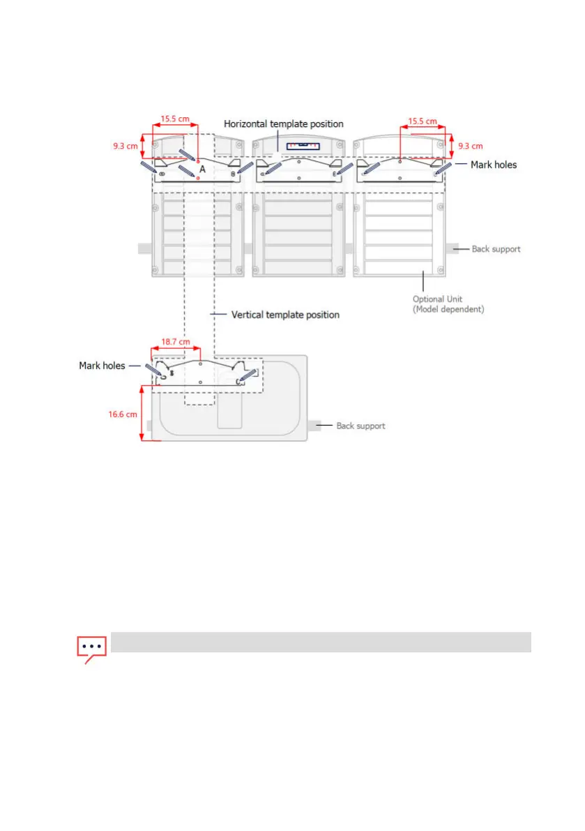 Place the mounting templates vertically against the wall and mark the drilling hole