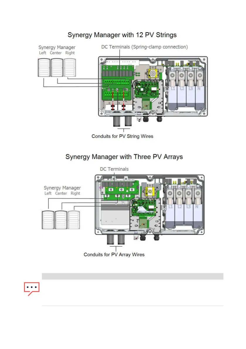 Figure 22: Connecting methods of PV Strings and PV arrays to Synergy Manager