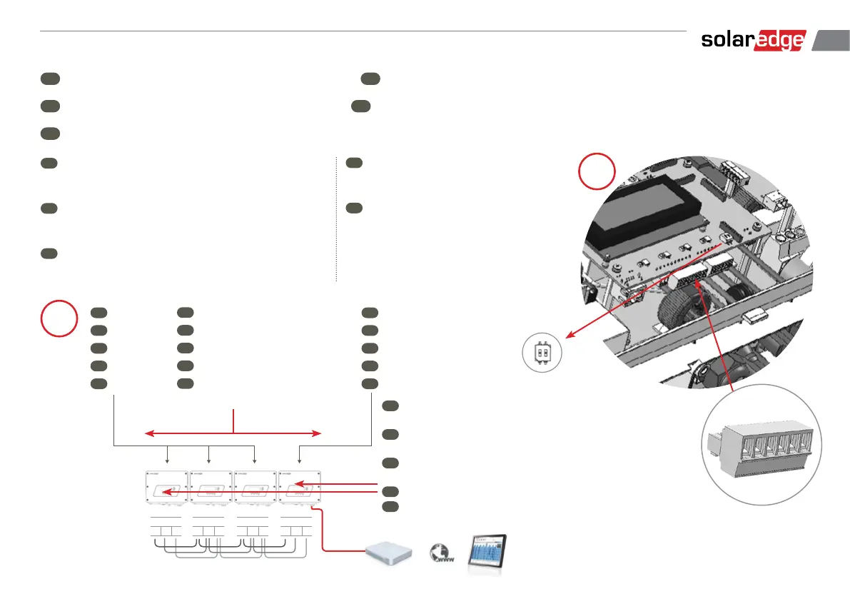 첫 번째와 마지막 인버터 연결종결 : SW7 DIP 스위치 위로 이동 (왼쪽 스위치)