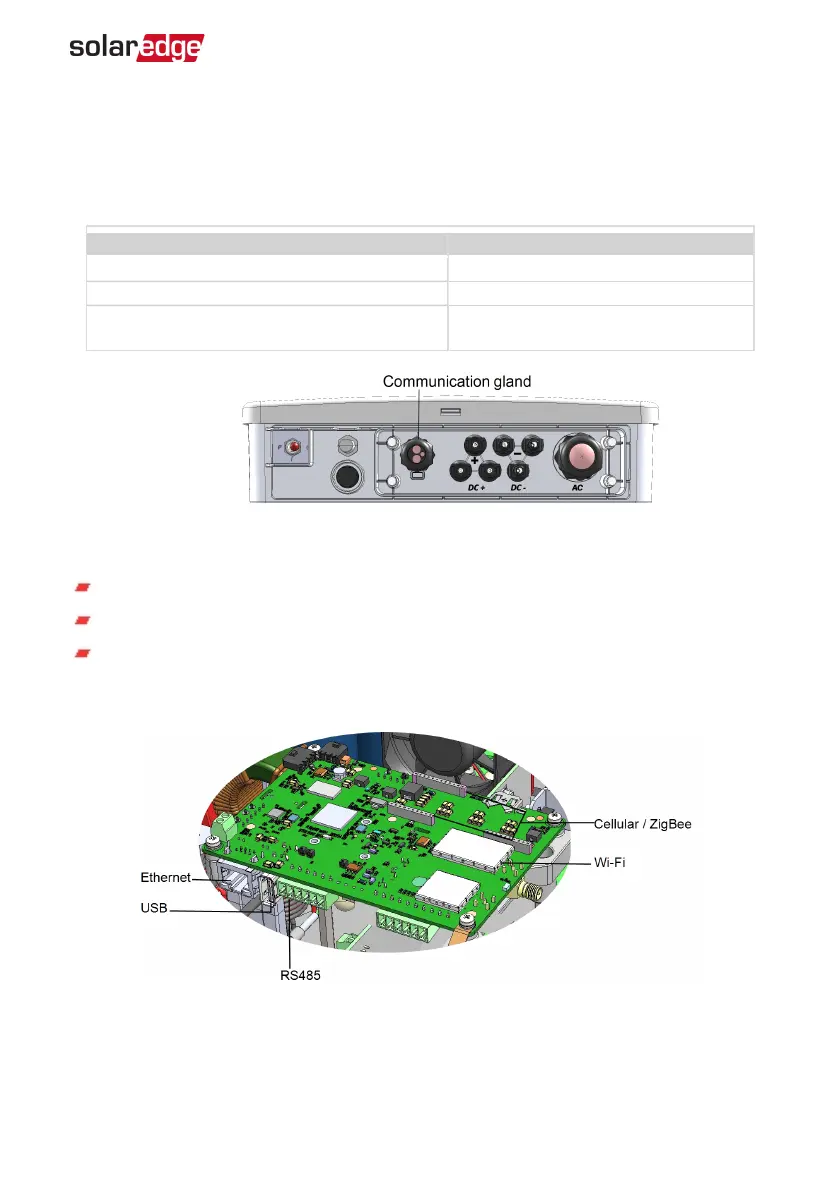The SolarEdge Wi-Fi antenna, ZigBee or Cellular Plug-ins can be connected to the