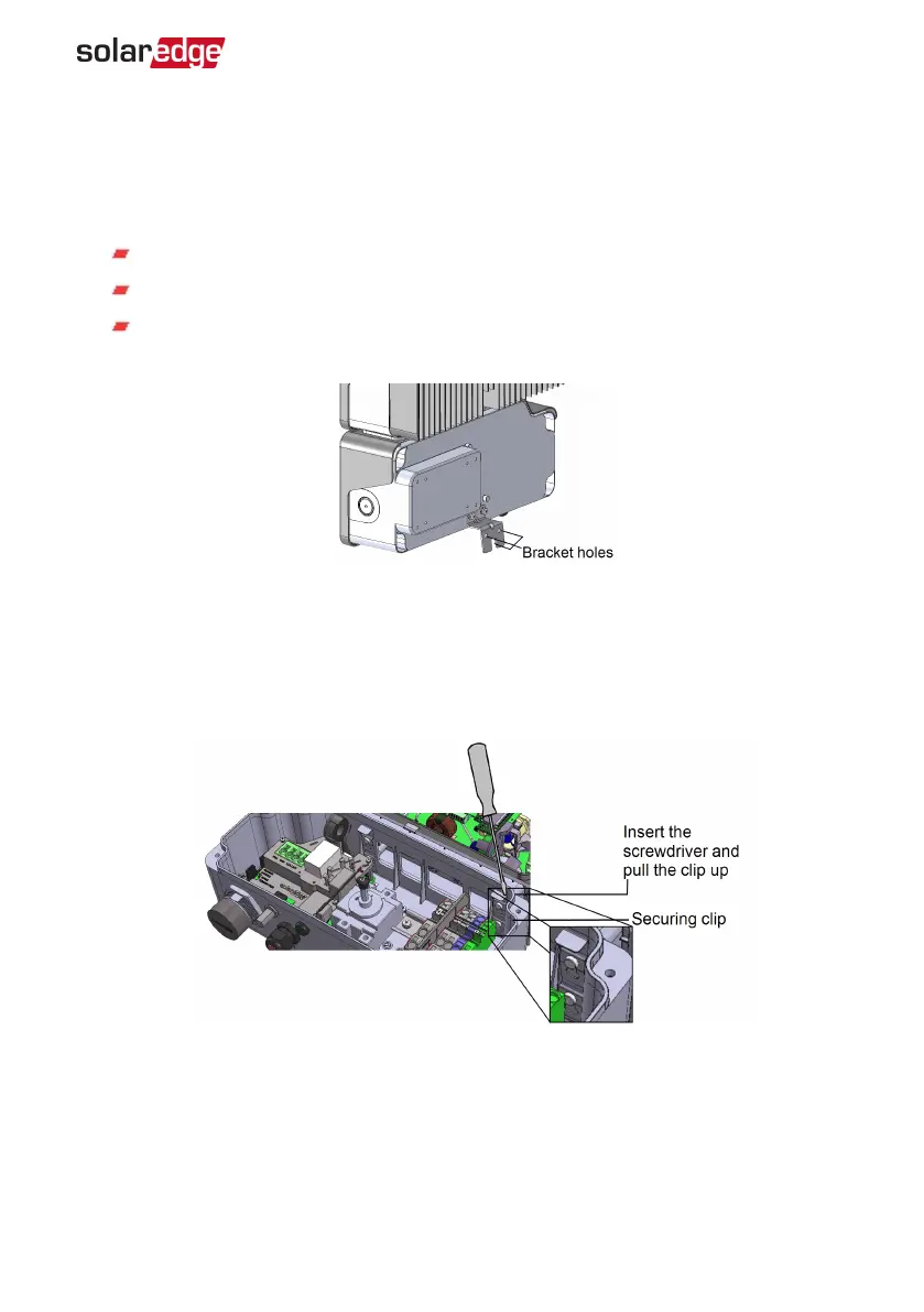 two clips securing the Connection Unit with Safety Switch to the inverter: Carefully