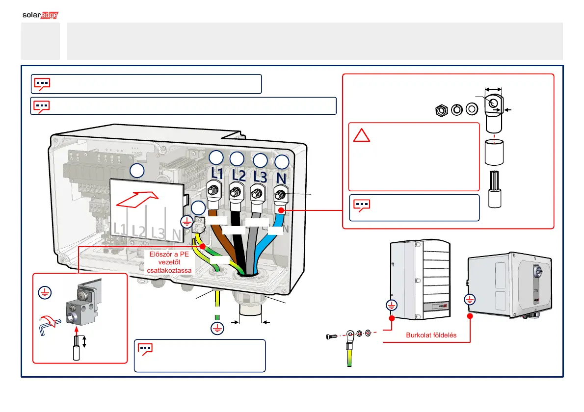 Az inverter 4 vezető + PE vagy 3 vezető + PE csatlakozást támogat