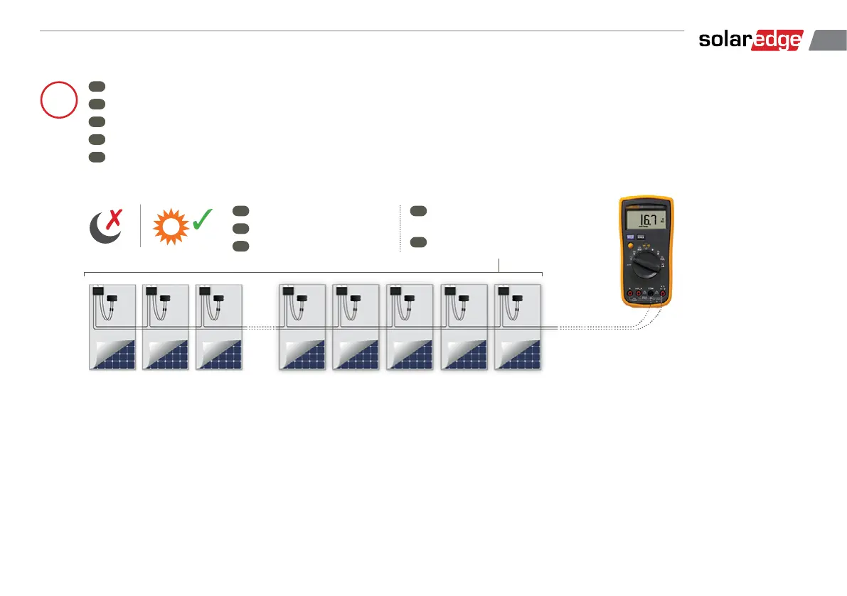 Vérier la polarité de la chaîne et mesurer chaque tension sur chaîne pour vérier la tension de 1±0.1V par opmiseur