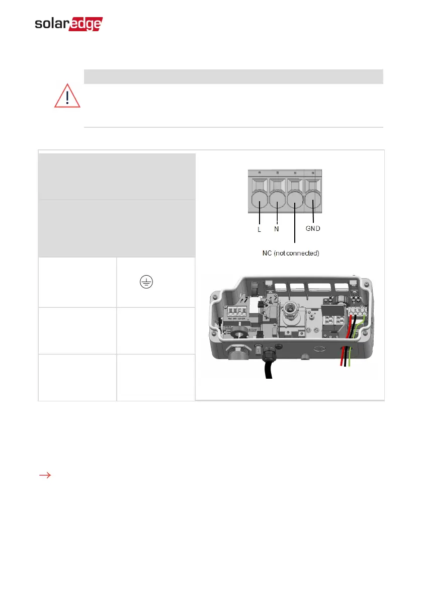 5. Connect the ACwires according to the labels on the terminal block.
