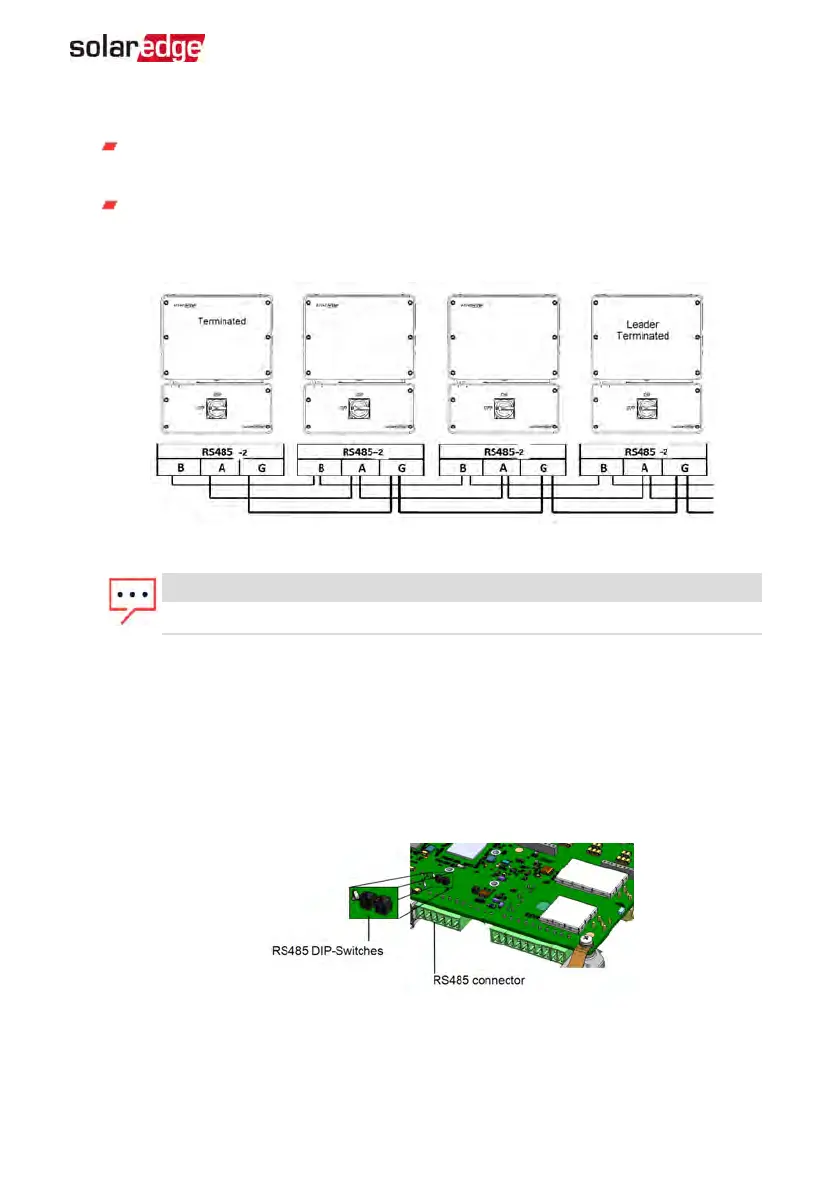 Terminate the first and last SolarEdge device in the chain by switching a termination