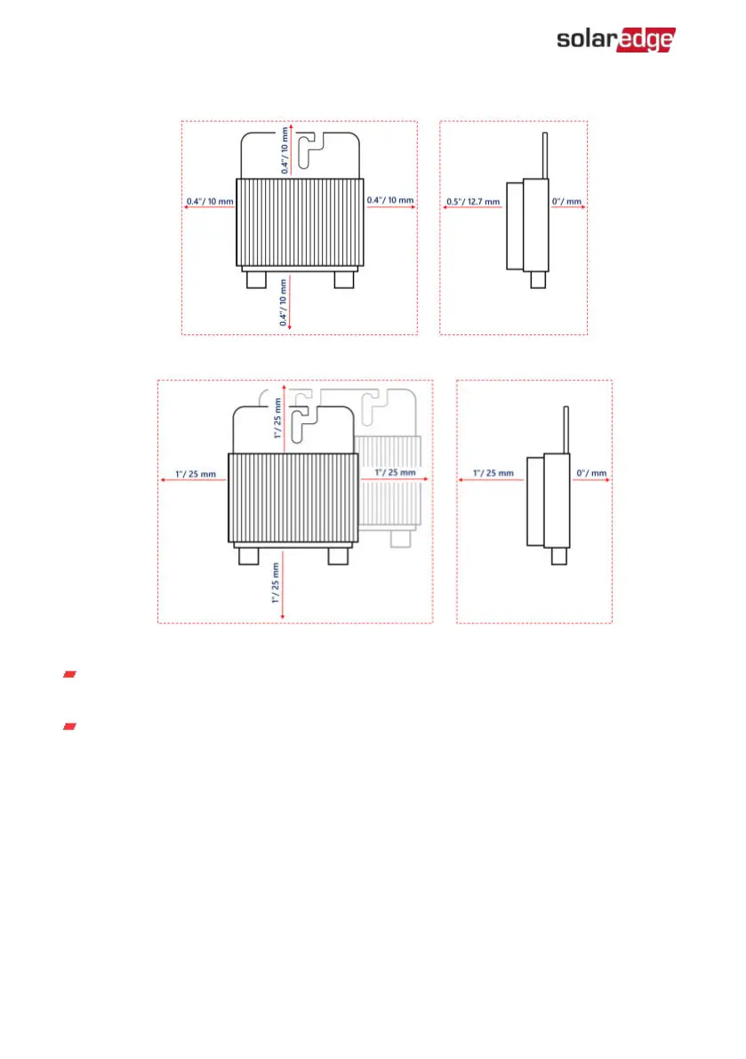 Figure 3: Clearance for heat dissipation around the Power Optimizer