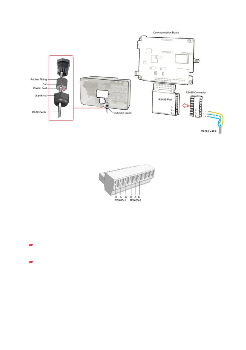 For creating an RS485 bus - connect all B, A and G pins in all inverters. The following