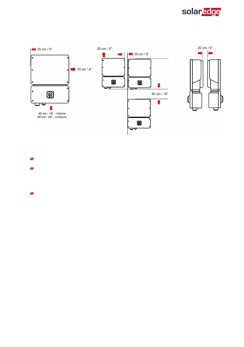 At least 18" (45 cm) from the bottom of the inverter if installing it indoors, 24”