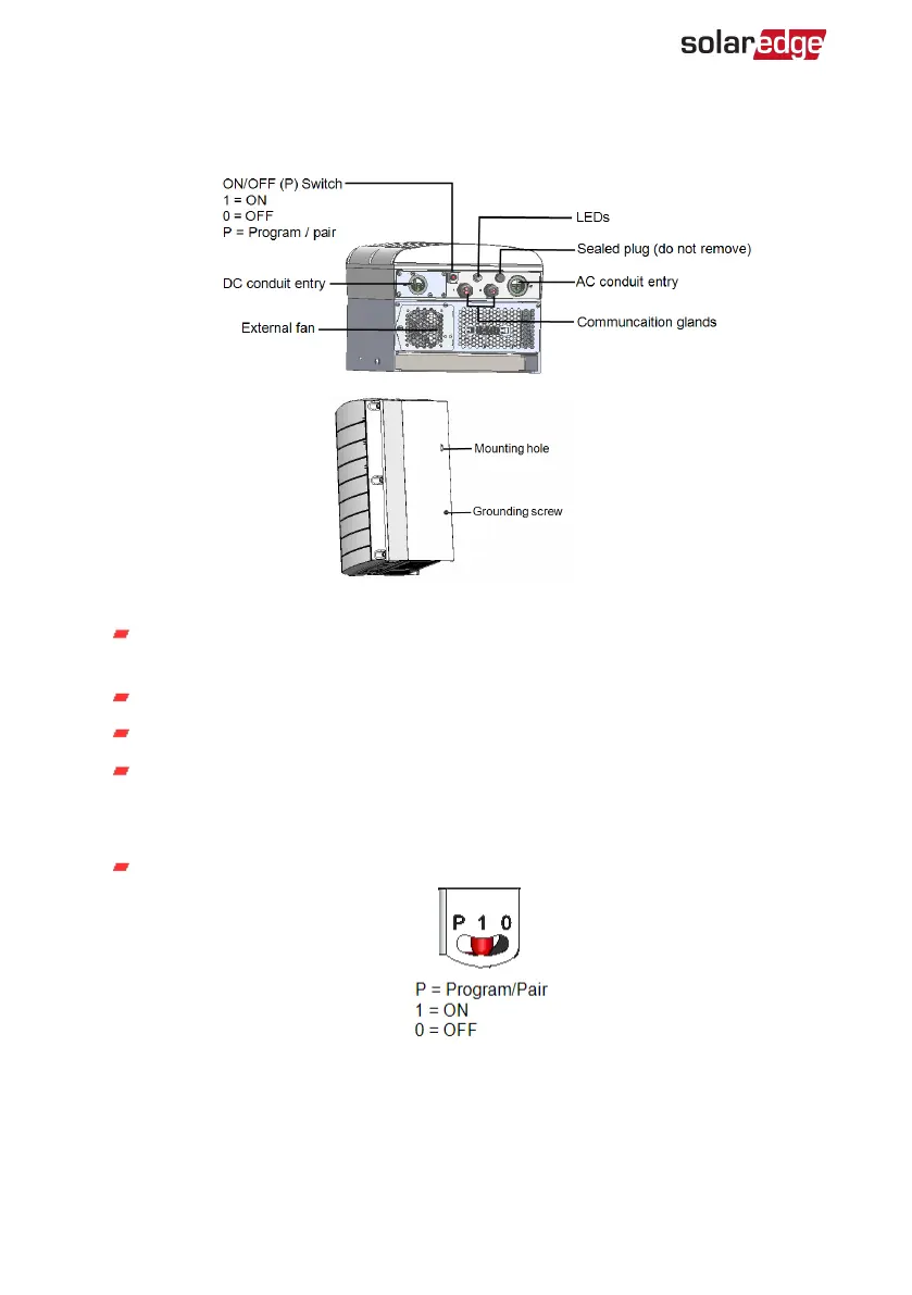 AC and DC conduit entries: Connection points of the Connection Unit.