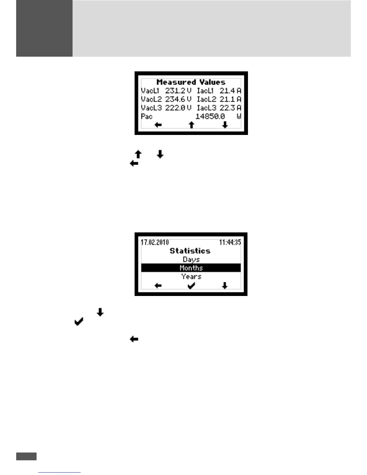 In the Statistics menu you can access the inverters internal data logger. The accessible