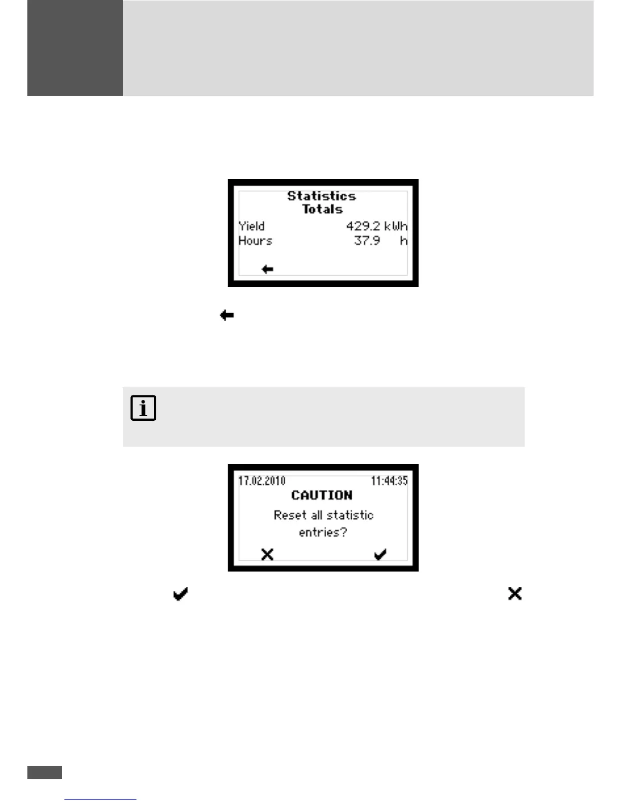 Press the button to conrm the deletion of all the statistics entries. Use the