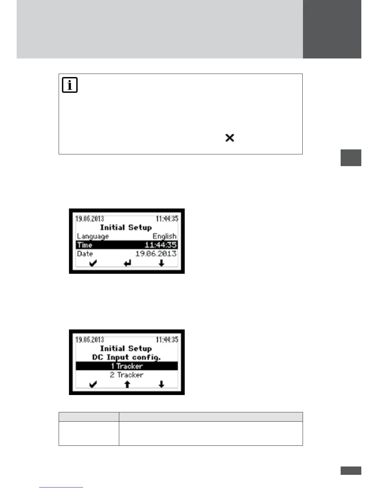 1. Switch on the inverter as described in section 6.1. The "Initial setup" menu will be