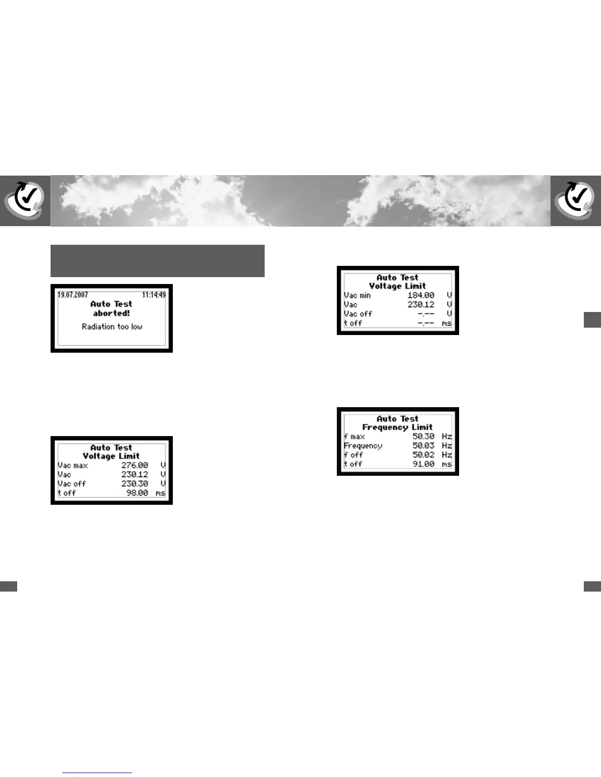 PLEASE NOTE: if a fault occurs during the tests or the irradiance is too low the