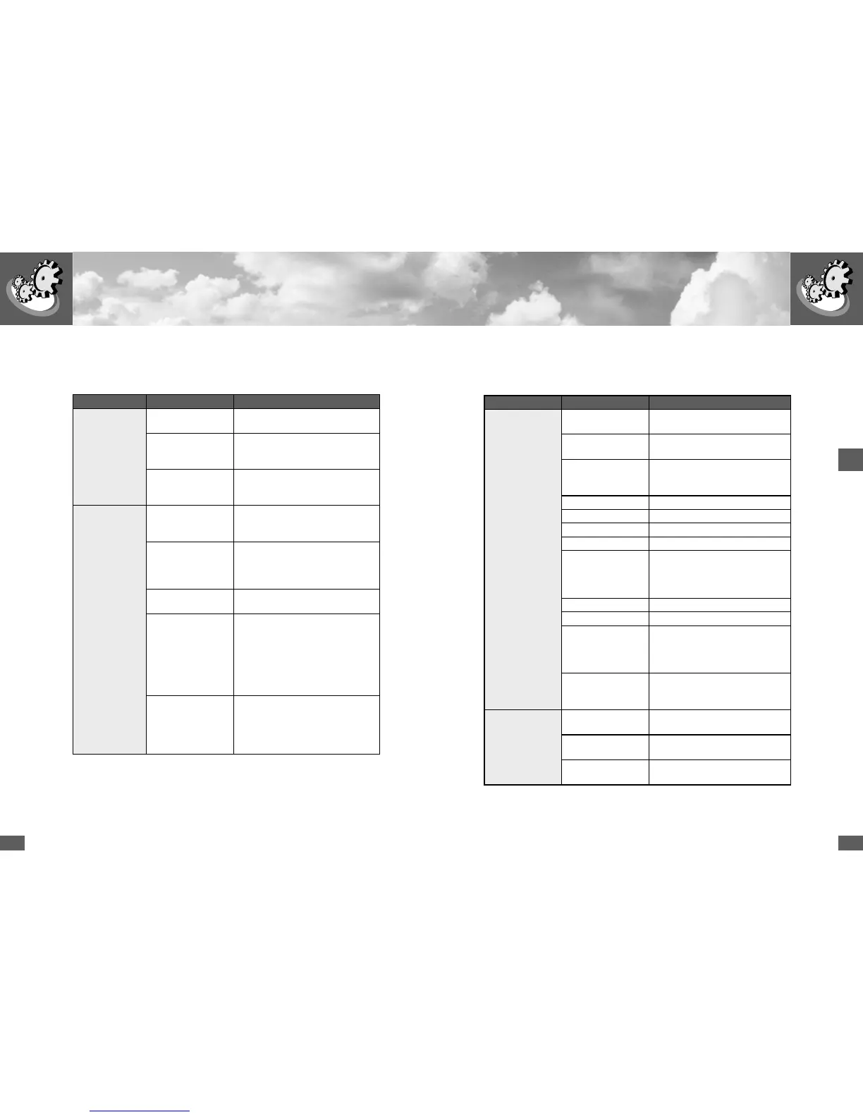 The following table shows the possible status messages, subdivided into four ca-