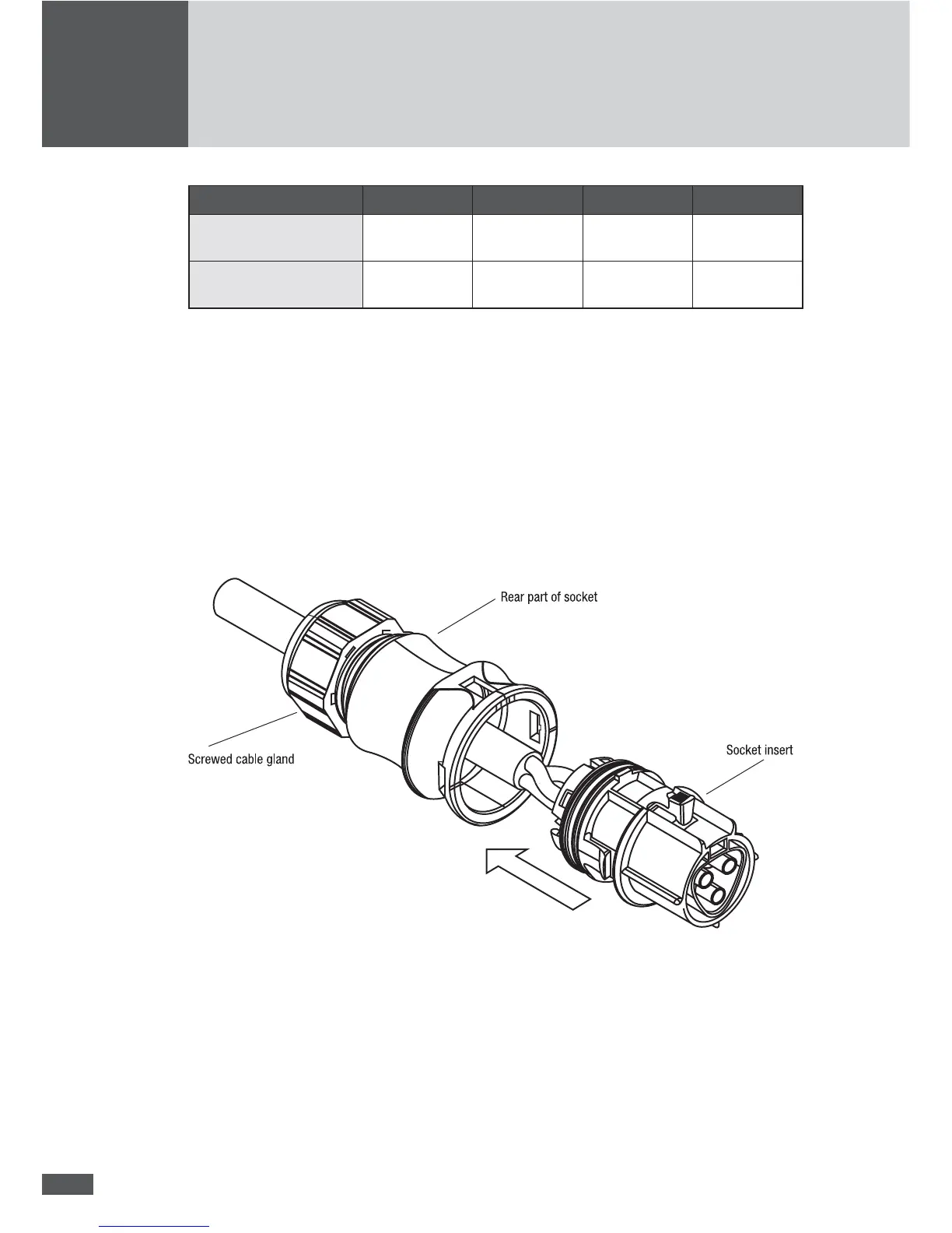■ Connect the AC cable socket with a exible cable according to EN 60309-2 /