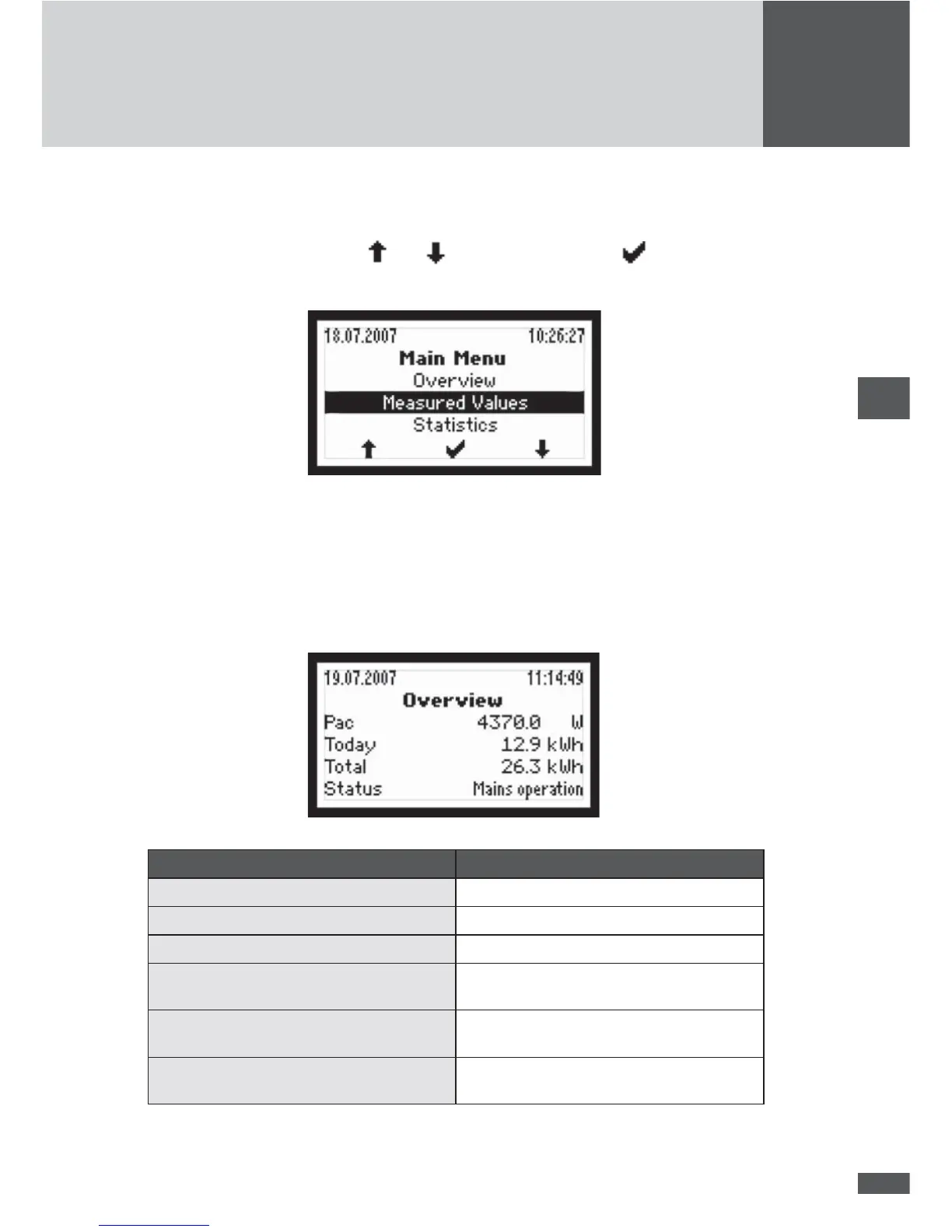 The main menu is the starting point for all the submenus and displays, see 6.4.2 “Menu