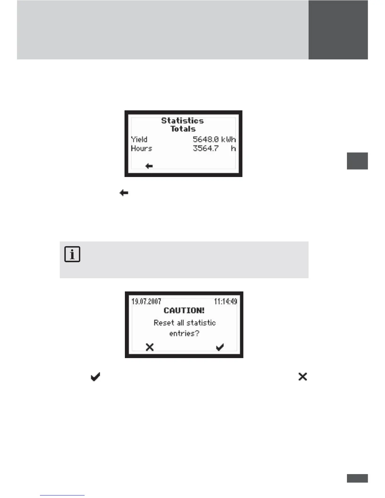Press the button to con rm the deletion of all the statistics entries. Use the