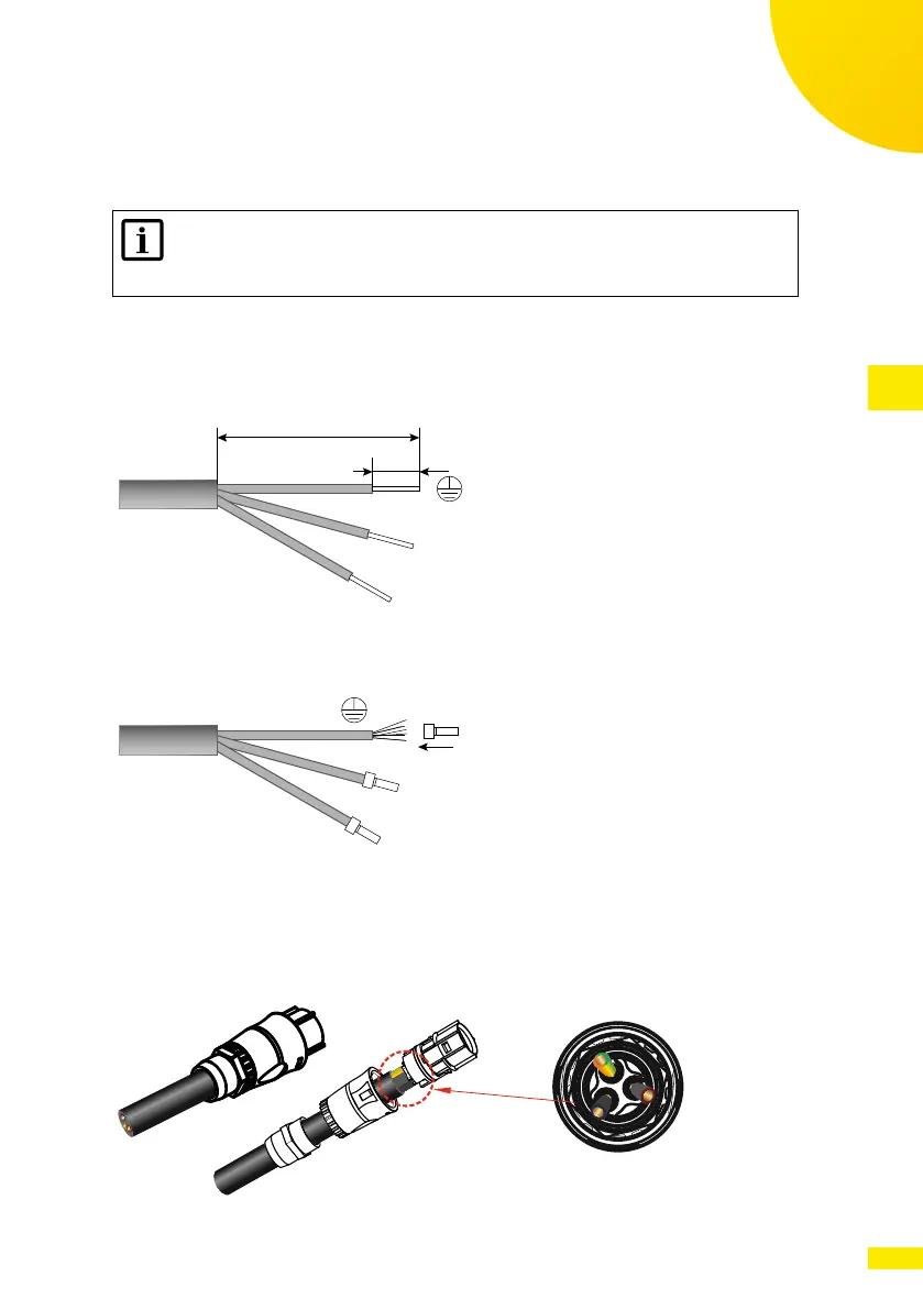 (Line) wires for a length Y of 36 mm, and to free the PE (Protective Earth)