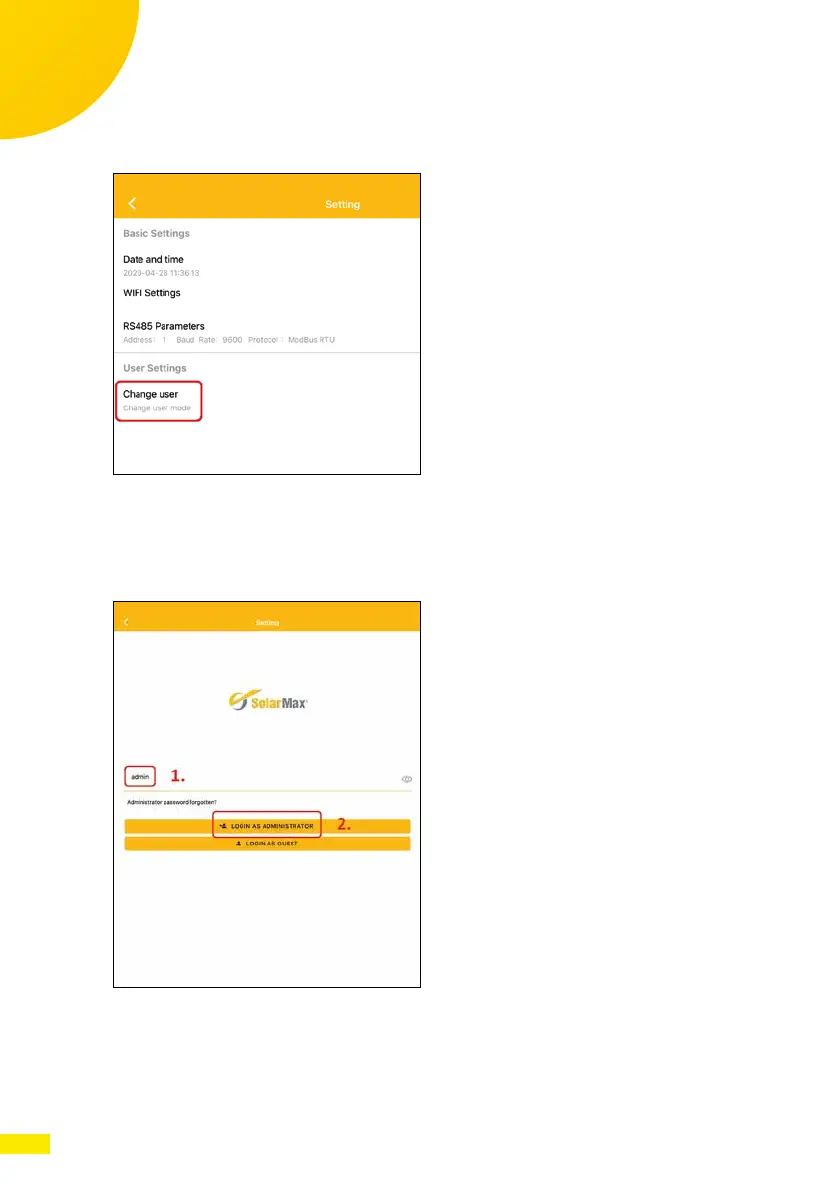 4. Enter the administrator password to change inverter data. Use the pass-