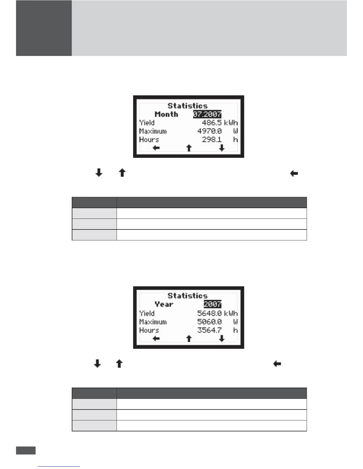 Use the and buttons to select a monthly statistic. Press the left button to
