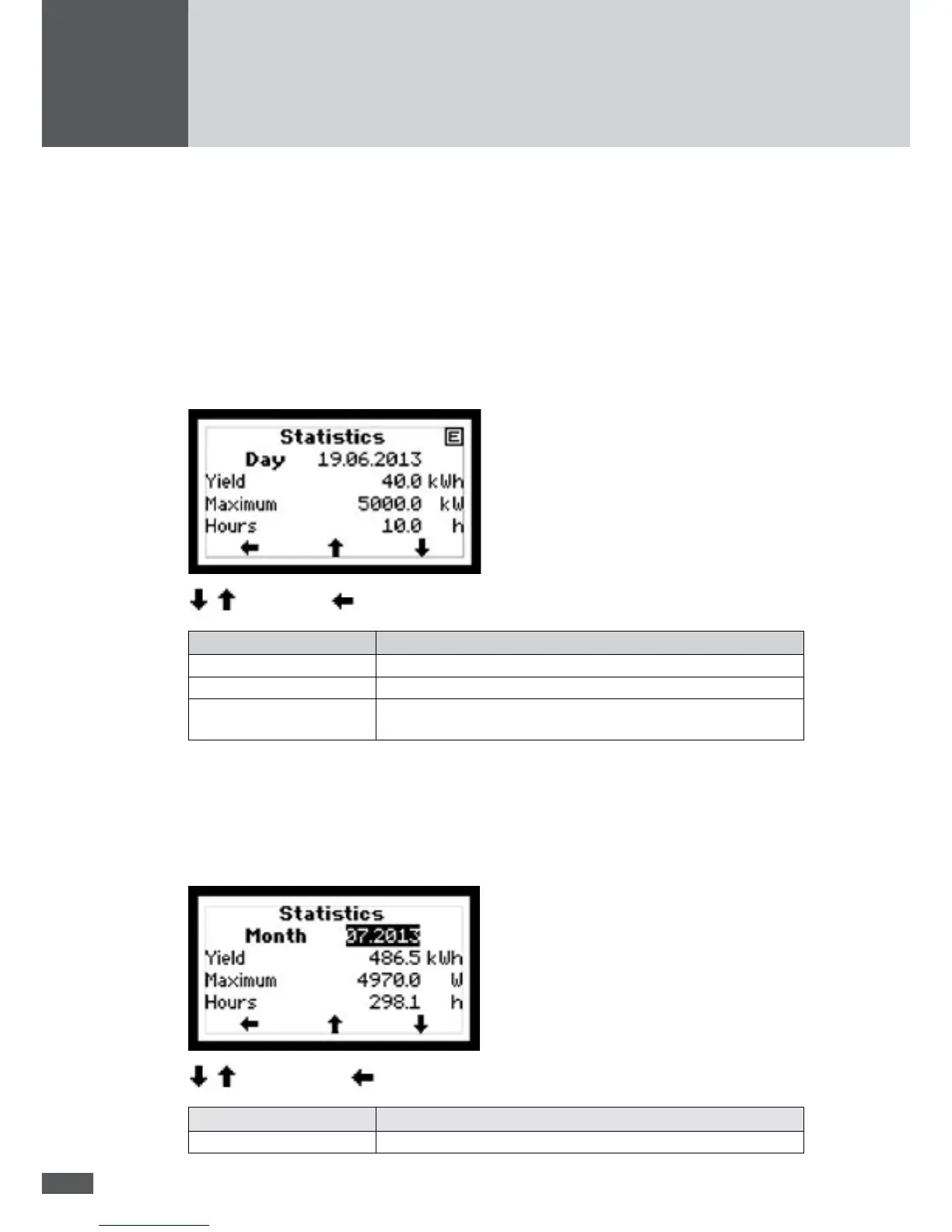 The "Statistics" menu can be used for accessing the inverter's data logger. The data