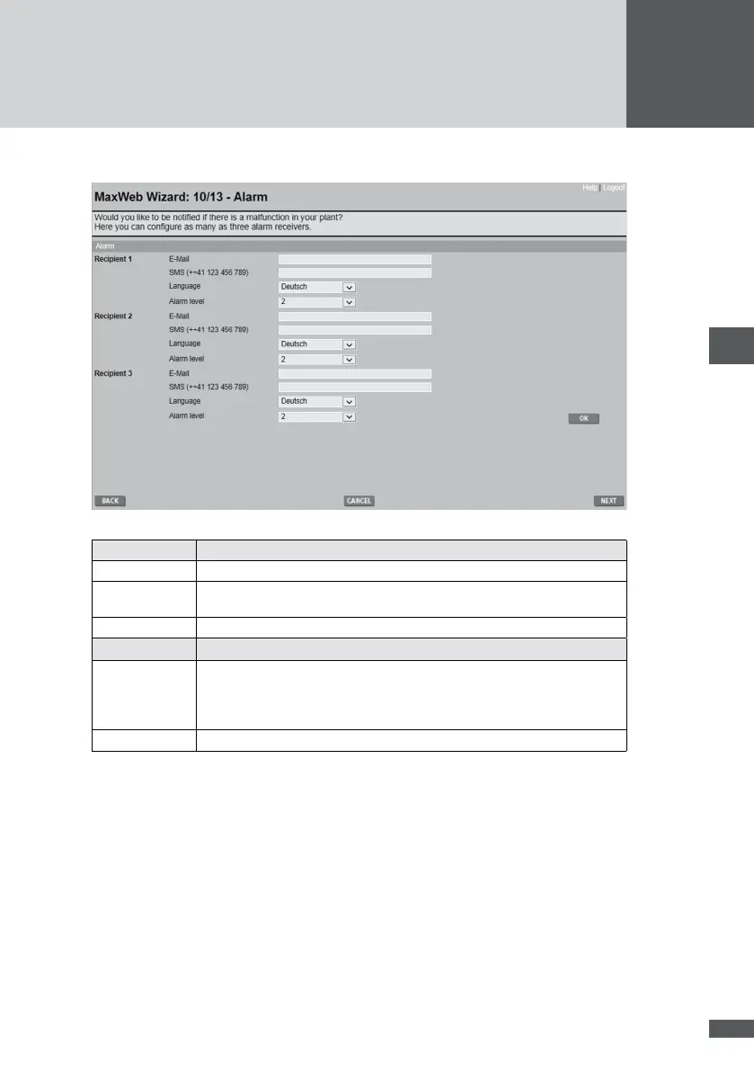 Alarm level The recipient will receive alarm messages up to the specied alarm level.