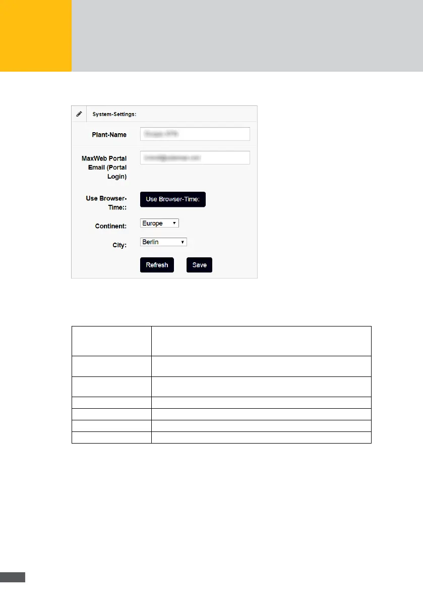 In this menu, you can set the devicename and the system time to be shown in the MaxWeb