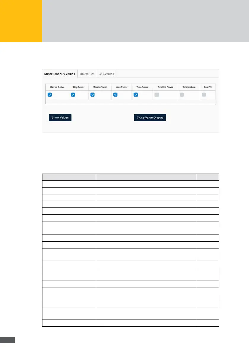 In the adjacent table, you can select the time values (general values, DC values, AC values)