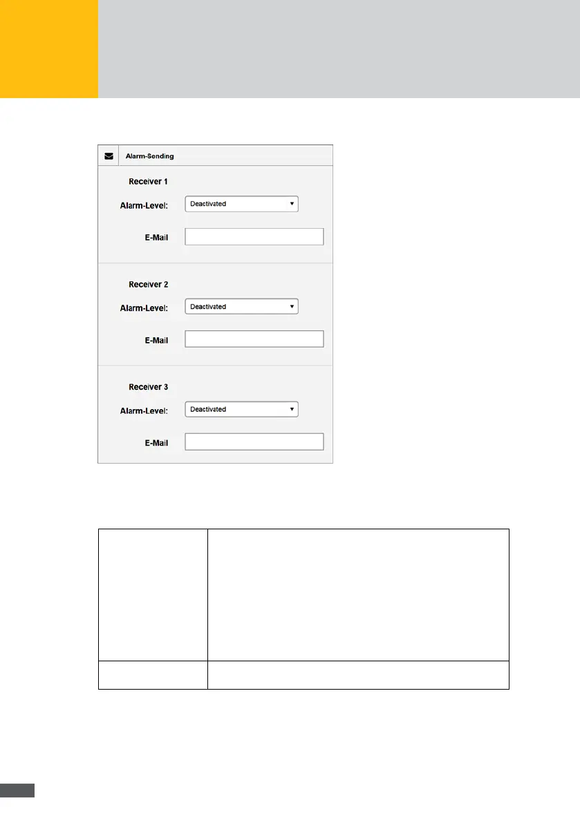 In the “Alarm settings” menu, you can dene up to three recipients to which alarms are