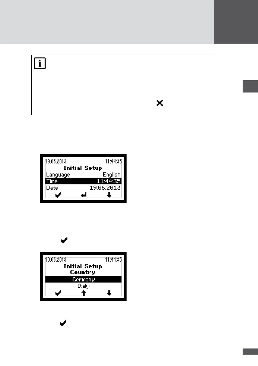 You can restart initial start-up by pressing in the "Conrmation"