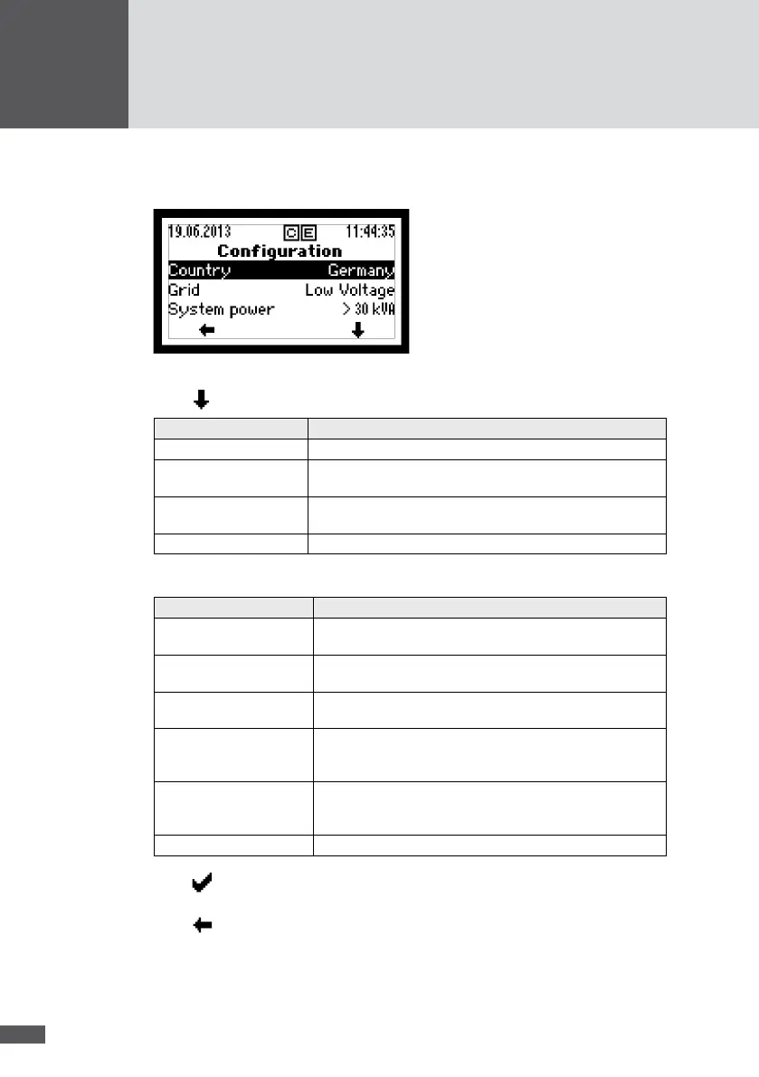 Grid Grid connection selected during initial start-up (only available