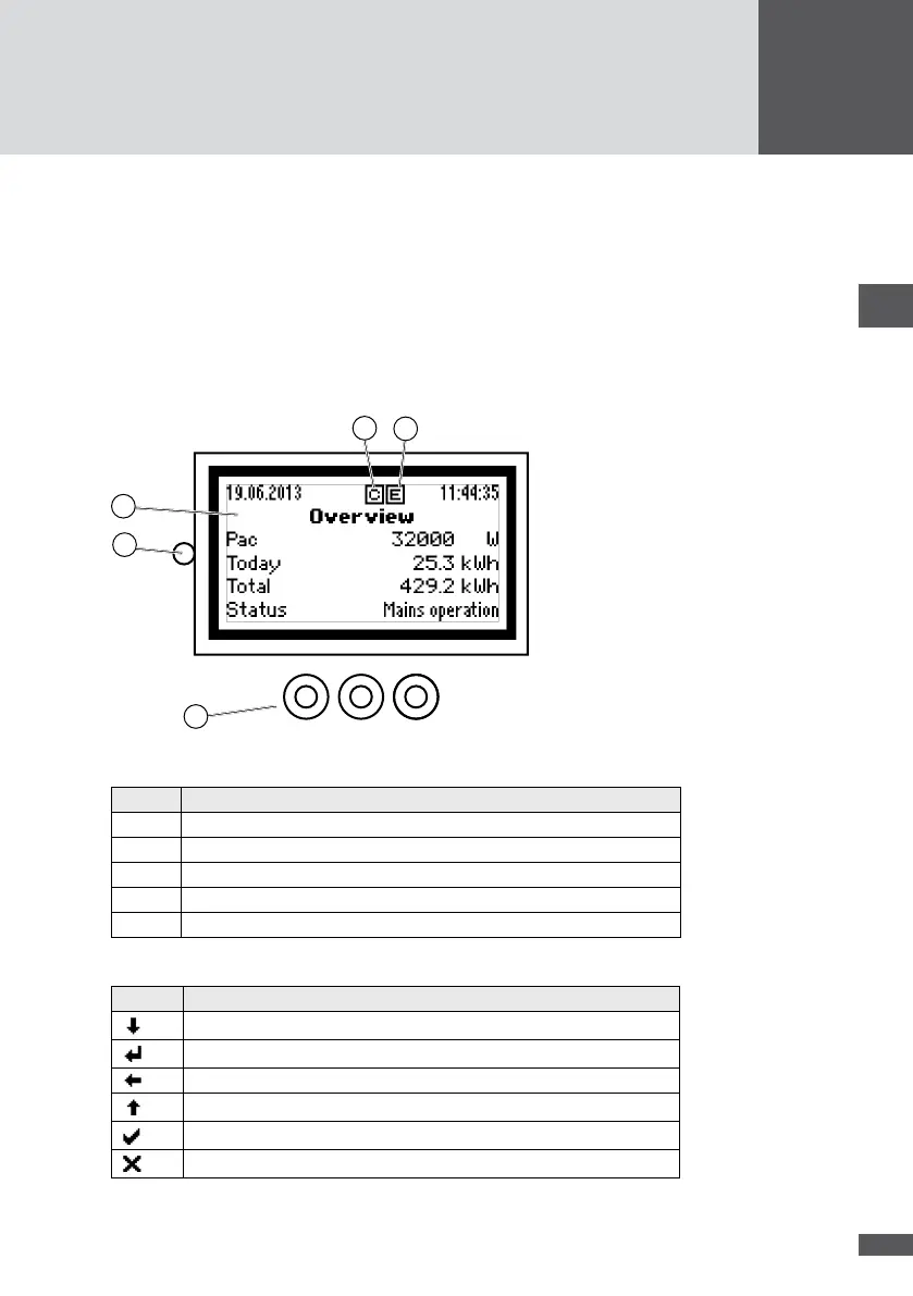 The graphics display shows the system values, status information, and the inverter’s