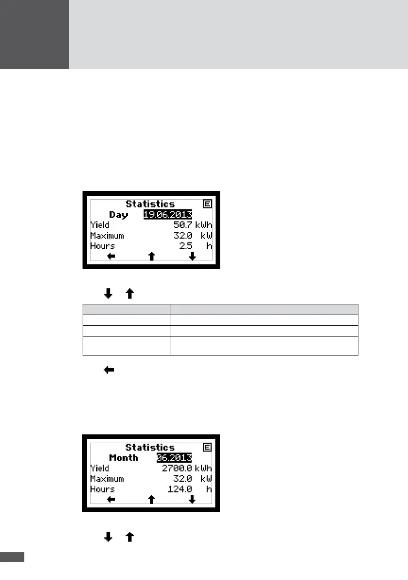 The "Statistics" menu can be used for accessing the inverter's data logger. The data