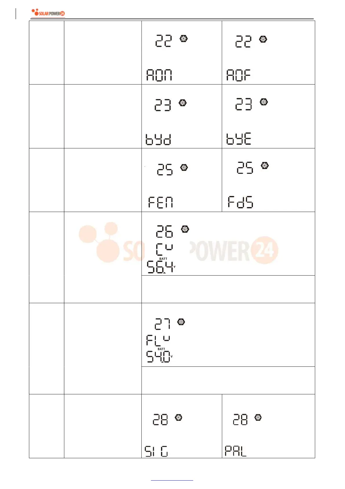 up. Setting range is from 48.0V to 62.0V. Increment of each click