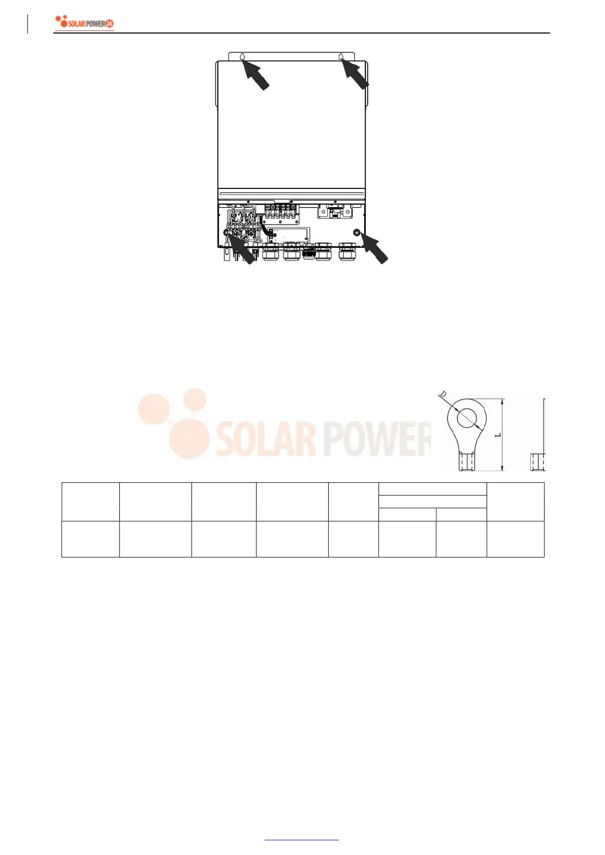 tightened with torque of 5 Nm. Make sure polarity at both the battery and the inverter/charge is correctly