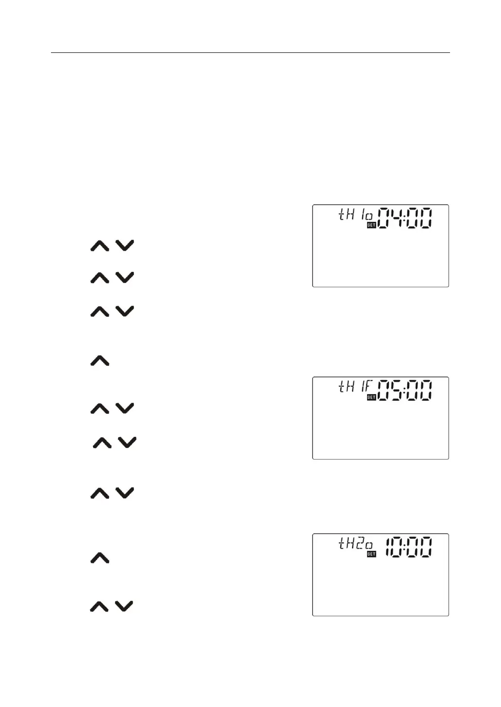 ►Press button, “tH 2o 10:00”displays, the start time