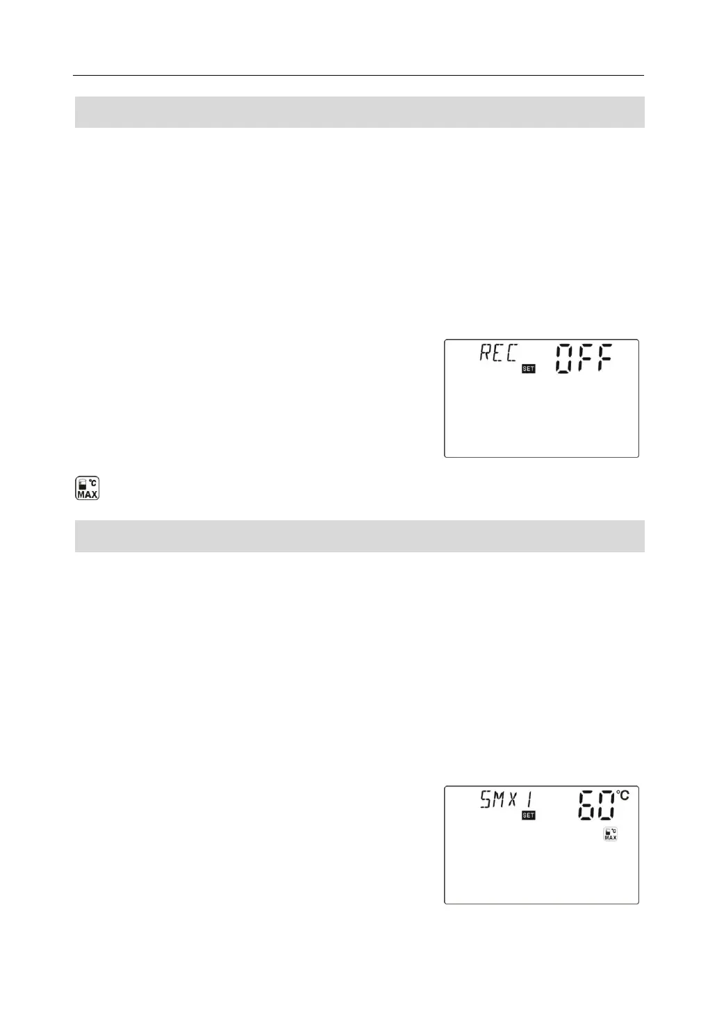 To access main menu TEMP, then select submenu REC, “REC OFF” displays on screen,