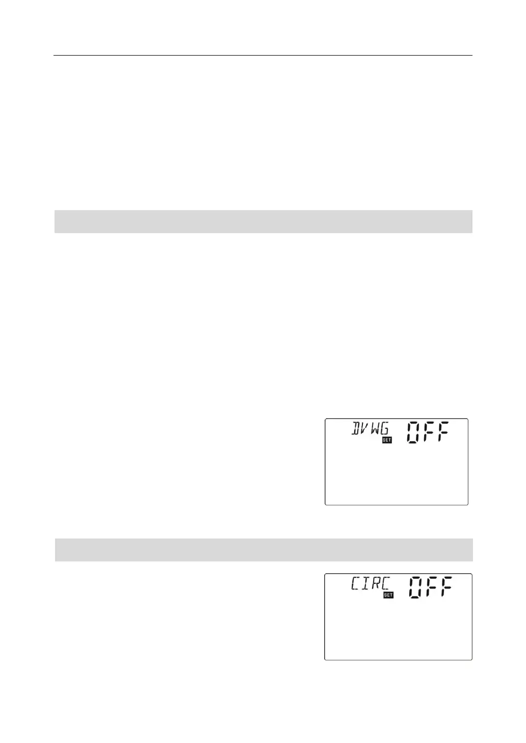 To access main menu FUN, then select submenu DVWG, “DVWG OFF” displays on screen.