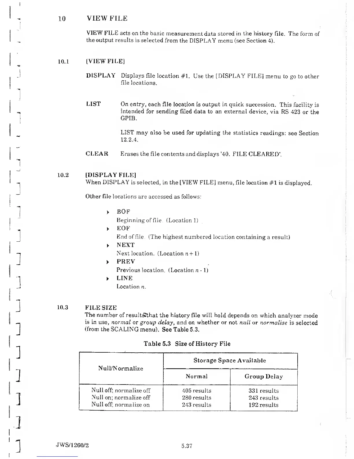 Table 5.3 Size of History File